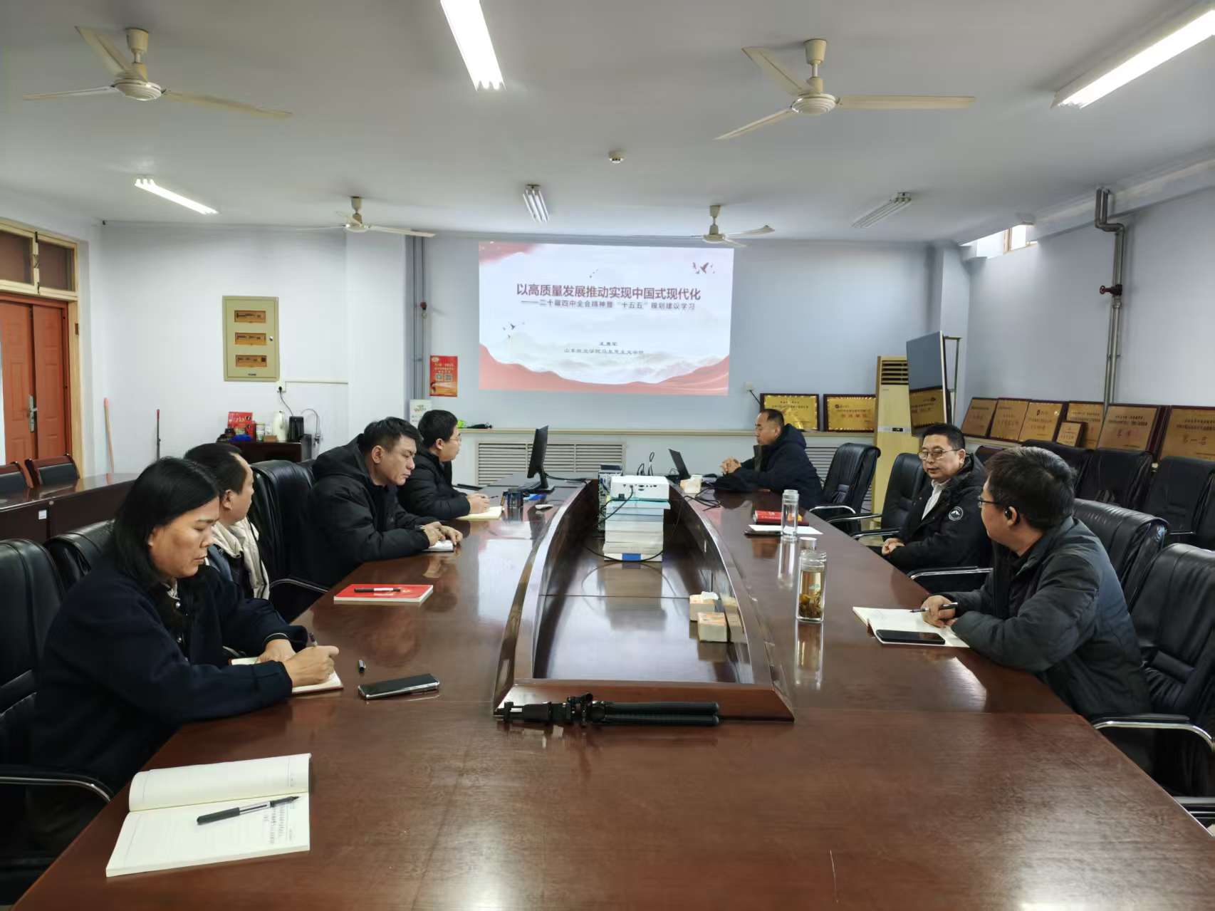 报告结束后,党支部书记作总结讲话。他指出,王勇军的报告逻辑清晰、内容详实、解读深入,对支部党员深刻领会二十届四中全会精神和“十五五”规划建议具有重要指导意义。下一步,支部将以此次学习为契机,紧密结合学校“十五五”规划部署,重点推进以下工作:一是优化国有资产配置机制,提升资源集约利用效率,推动资产向教学、科研、人才培养等关键领域精准配置,为学校学科建设和科研创新提供坚实保障;二是完善资产管理制度体系,加强全流程监管,提高资产使用效益,防范资产管理风险,以规范化管理助力学校治理能力现代化;三是加快推进资产管理信息化建设,积极盘活闲置资产,促进资源循环利用,支撑学校绿色校园和智慧校园建设。支部全体党员要立足本职岗位,将学习成果转化为推动工作的实际行动,以高质量的资产管理成效,为学校“十五五”规划顺利实施和内涵式发展筑牢根基。